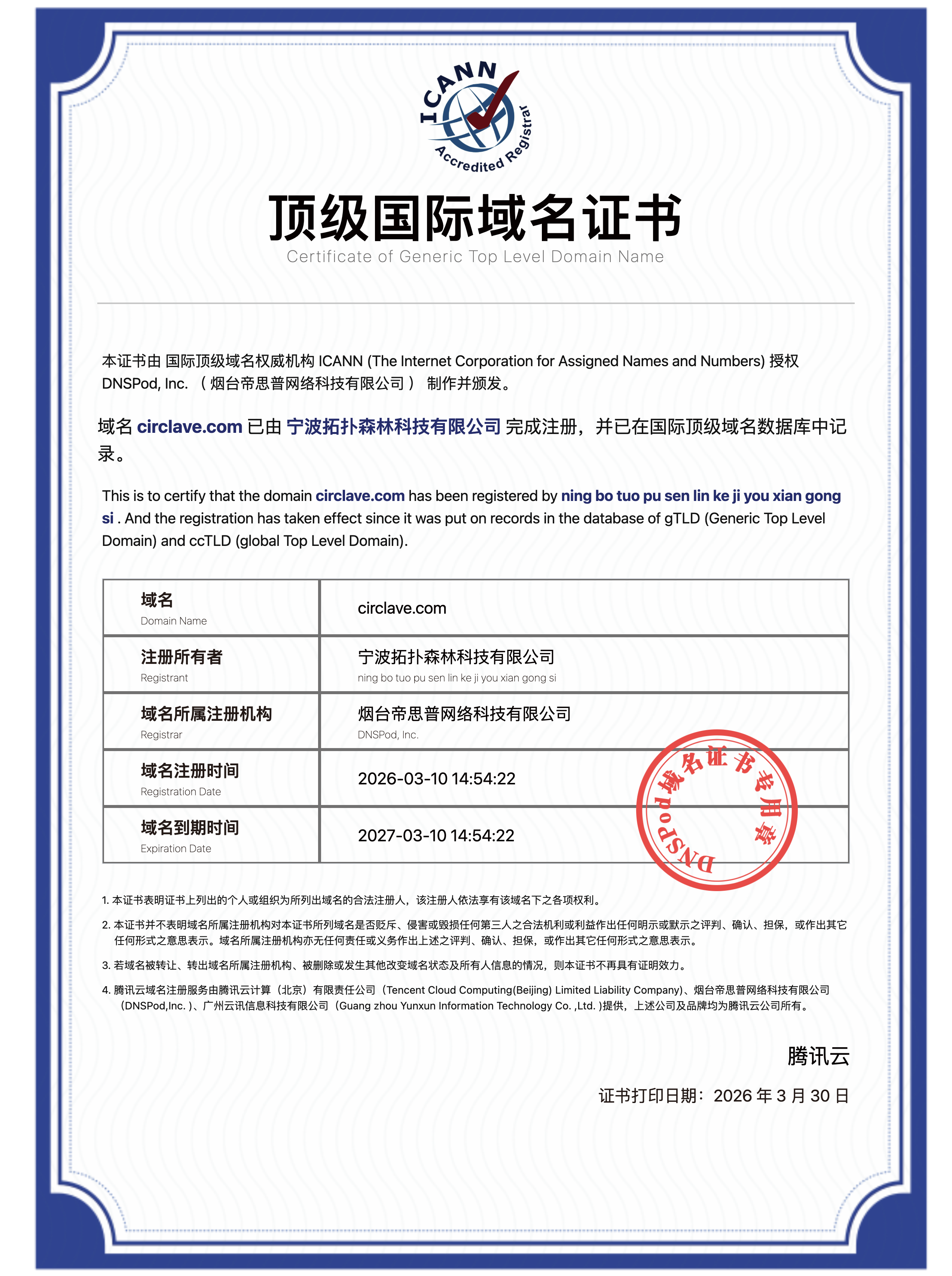国际顶级域名 circlave.com 注册完成,由 ICANN 授权机构 DNSPod 承办。