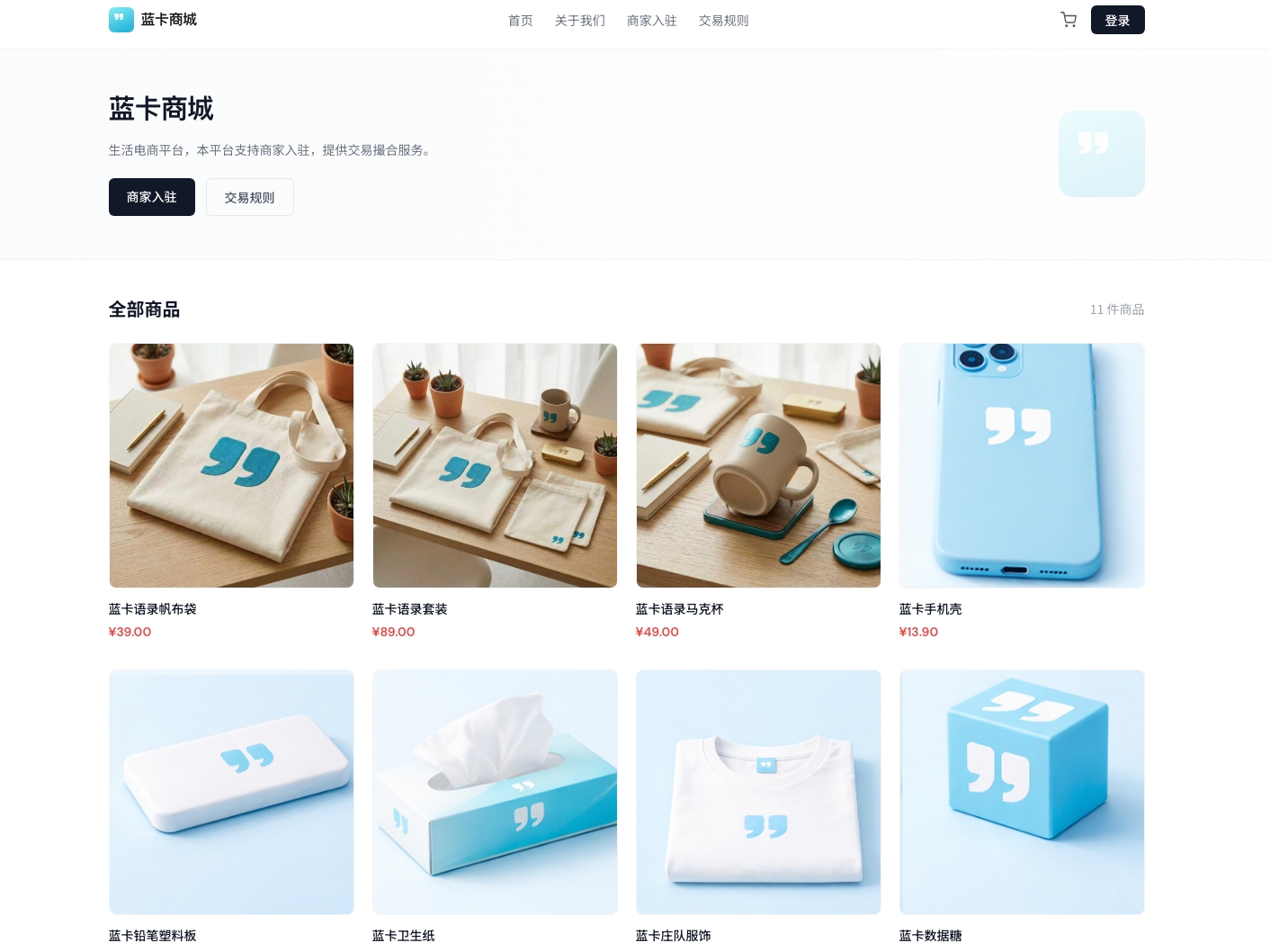 以“蓝卡”品牌为核心,构建覆盖生活社区与生活电商的一体化产品矩阵。